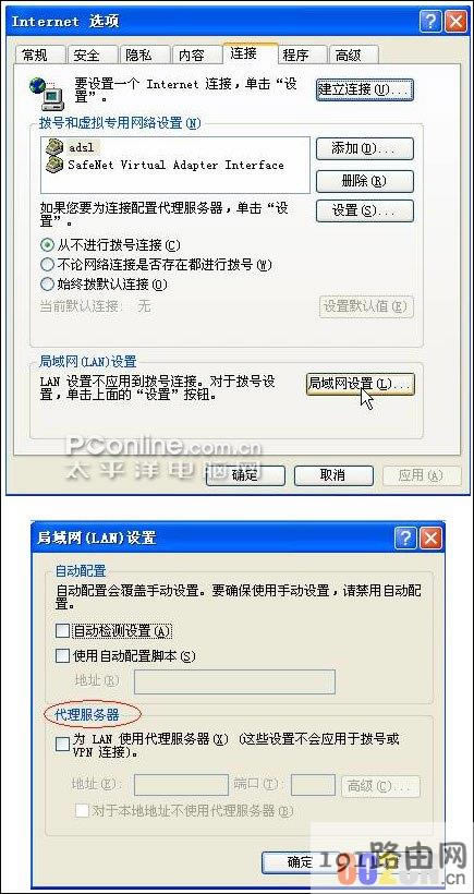 · 右鍵單擊“本地連接”選“屬性”,選中“Internet協(xié)議(TCP/IP)”,點擊“屬性”: ![]() · 將電腦設為“自動獲得IP地址”,“自動獲得DNS服務器地址”點擊“確定”: ![]() · 然后右鍵單擊“本地連接”選擇“狀態(tài)”,查看“支持”: ![]() ![]() 『注』若設置無誤,地址類型、子網(wǎng)掩碼及默認網(wǎng)關都應與上圖相同,IP地址則不一定是192.168.0.13,但應是192.168.0.×(×為2~254之間的某個數(shù)值) · 跟著在DOS命令行中通過ping來檢測電腦與路由器的連接。 o 找到“開始”->“運行”,輸入cmd,點擊“確定”,打開DOS命令行: ![]() o 在命令行中輸入“ping 192.168.0.1”然后回車,若顯示“Reply from 192.168.0.1……”則說明電腦與路由器已連通了: ![]() o 若顯示其他信息,譬如“Request timed out”則表示電腦與路由器的連接有其他問題,請繼續(xù)參看接下去的內(nèi)容。 排除原因2、3:· 若您是動態(tài)IP接入用戶,且已排除了原因1,那么請仔細閱讀下文。若您直接用電腦上網(wǎng)時,可看到電腦獲得的IP地址是192.168.0.0網(wǎng)段的,一旦將其與WGR614v4連接,電腦就無法進入路由器的設置頁面了,因為路由器的局域網(wǎng)已經(jīng)是192.168.0.0,不能接入另一個192.168.0.0的網(wǎng)絡。 ![]() 『注』初次設置路由器須按以上步驟,以后登錄時只需輸入192.168.0.1即可,且路由器會要求提供用戶名和密碼。ADSL用戶請注意,此處填入的用戶名和密碼不是ADSL的帳號和密碼,而是路由器鑒別管理員所用的用戶名和密碼,用戶名:admin/密碼:password,都是小寫,這些信息在設備背面可以找到。 · 默認進入的頁面是基本設置頁面,如圖: ![]() 『注』無論何種接入方式,初次設置路由器都須先通過有線方式連接到路由器,因為默認時,路由器的無線功能未開啟。在基本設置頁面中進行相應的設置,完成后無線收發(fā)功能才會開啟,才可使用無線連接。有關此頁的設置可參看路由器快速安裝文檔。 2跟著是更改WGR614v4的局域網(wǎng)IP地址,在路由器左邊功能列表中找到局域網(wǎng)IP 設置,進入此頁面后,分別將局域網(wǎng)IP地址、DHCP服務器起始IP地址和結束IP地址作如下修改:![]() · 當設置生效后,WGR614v4的局域網(wǎng)IP地址即變?yōu)?92.168.2.1,須將電腦的IP地址刷新才能正常使用,操作如下: o 點擊“開始”->“運行”,輸入cmd,點擊“確定”,打開DOS命令行: ![]() o 輸入清除IP地址的命令ipconfig/release,等待片刻后IP地址被釋放,如下: ![]() o 跟著輸入獲取IP地址的命令ipconfig/renew,片刻后顯示出新的IP地址: ![]() o 此后要管理路由器就須在瀏覽器中輸入更改后的管理IP,即192.168.2.1。 · 待完成以上操作后,將路由器的WAN口重新連接原來所接的設備,然后啟動瀏覽器,直接輸入192.168.2.1然后回車,此時應該能打開路由器的設置頁面了。 排除原因4:· 當排除了以上幾種可能,且電腦ping路由器時,顯示是連通的,那么請檢查您的IE是否設置了代理服務器。 ![]() ![]() 排除原因5:· 若用安裝了多塊網(wǎng)卡的電腦來管理路由器,最好只啟用連接路由器的有線網(wǎng)卡,其他網(wǎng)卡的連接暫時禁用,這樣可避免由于網(wǎng)卡設置不當引起的無法進入路由器管理頁面的問題。 路由器不僅讓你更穩(wěn)定快速地連接無線網(wǎng)絡,更可以讓家中的智能設備連接在一起。 |