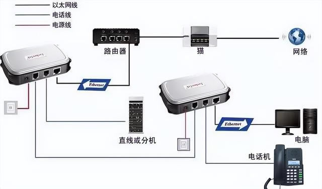 早期寬帶通過電話線進入家庭,但現在這種接入方式使用較少,做一個簡單的介紹:使用電話線連接調制解調器(貓),使用網線連接貓和路由器WAN口,路由器LAN正常連接計算機設備。