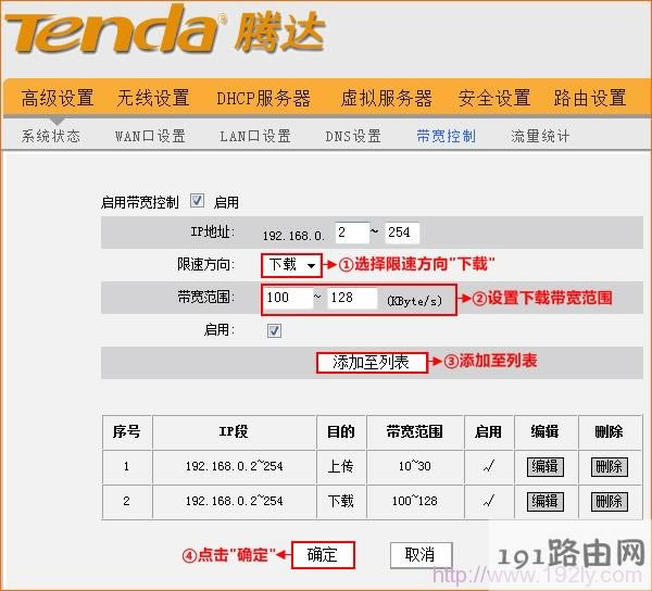 2.設(shè)置“下載”帶寬范圍---“確定”。