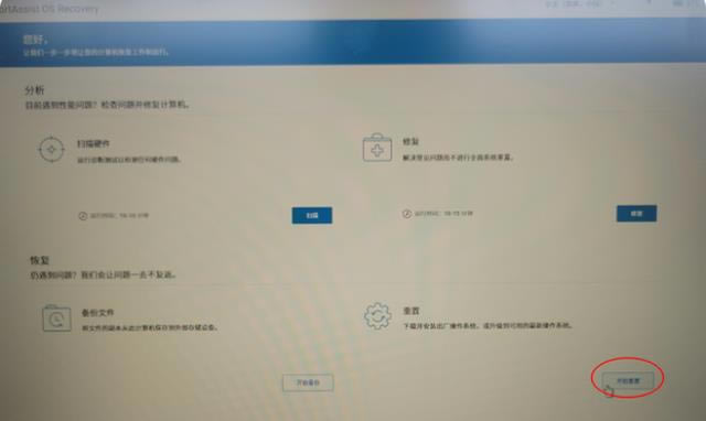 進入還原界面后,選擇開始重置。