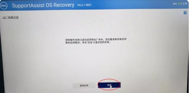 10.提示恢復(fù)成功后,點擊完成重啟計算機,初始設(shè)置系統(tǒng)并進入桌面。