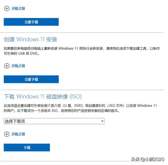 微軟官方提供3個下載方式 1、Windows 11 安裝助手 這是安裝在前使用的設備上安裝的 Windows 11 的最佳選項 2、創建 Windows 11 安裝 如果要重新安裝或舊電腦上重新安裝 Windows 11 或執行全新安裝,請使用此選項下載創建工具制作可指導的工具 USB 或 DVD。 3、下載 Windows 11 磁盤映像 (ISO) 該選項適用于創建引導介質安裝的介質(U 盤、DVD)或者創建虛擬機(.ISO 安裝文件) Windows 11 的用戶。 3、下載 Windows 11 磁盤映像 (ISO) 該選項適用于創建引導介質安裝的介質(U 盤、DVD)或者創建虛擬機(.ISO 安裝文件) Windows 11 用戶。這個下載項是多版本 ISO,使用您的產品密鑰來解鎖正確的版本。