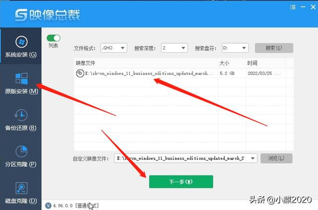 打開后,軟件自動識別U盤中的系統鏡像。您可以直接點擊下一步或左側的原始安裝