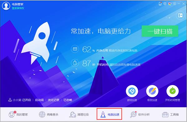(1)打開電腦管家的主頁, 然后點擊電腦加速按鈕;