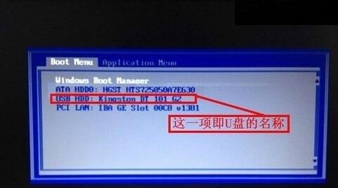 ![]() 2.接著在彈出的啟動菜單窗口,移動光標選擇第四項kingstonDataTraveler G3 PMAP,即U盤的名稱,如果要從光盤啟動,選擇光驅的名稱即可。
