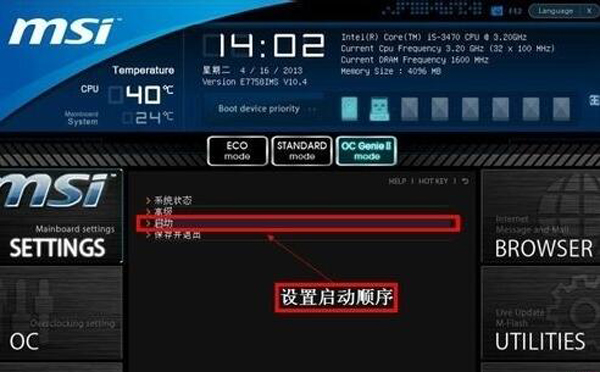 ![]() 2.進入主板設置之后,選擇“啟動”按回車確定。如下圖所示