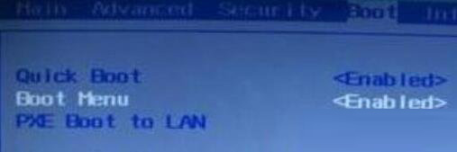 2、然后切換到boot選項,回車選擇boot menu改為enabled,按F10保存,如圖所示: