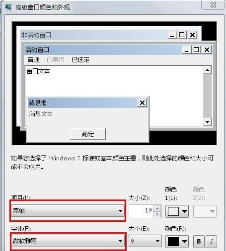 在“項目”的下拉列表中,可以看到所有可以修改的項目,如“菜單”和“工具提示”等帶有文字的項目,就可以對字體、大小以及顏色進行任意的修改,而這個地方?jīng)]有列出的項目,其字體是不能修改的。