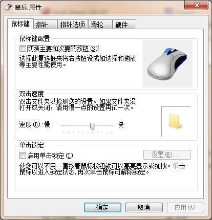 3、調(diào)整雙擊速度,彈出對話框,切換到“鼠標鍵選項卡。在“雙擊速度11選項組內(nèi)向左拖動調(diào)節(jié)滑塊,調(diào)整雙擊速度。0單擊 “確定"按鈕即可。