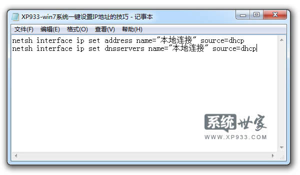 簡單吧?下面再教你怎樣一鍵設置IP地址,同樣的步驟,txt文件內容為: