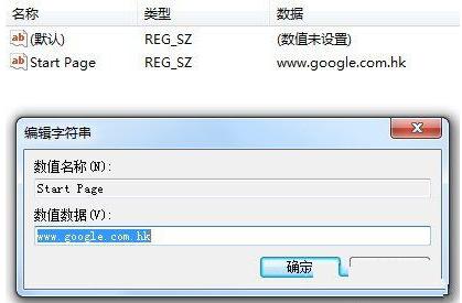 4、在打開(kāi)的編輯字符串窗口輸入自己常打開(kāi)的網(wǎng)址主頁(yè),然后點(diǎn)擊“確定”即可完成。