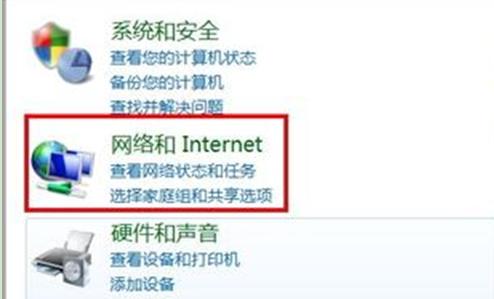 2、在打開(kāi)的“控制面板”窗口中點(diǎn)擊“網(wǎng)絡(luò)和Internet”選項(xiàng)。