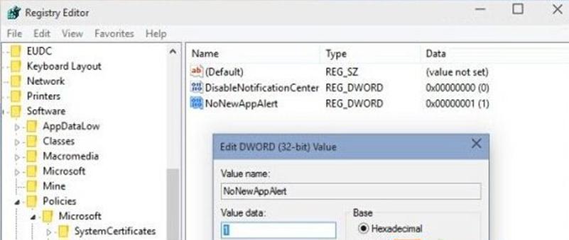 | Windows 7,中文名稱視窗7,是由微軟公司(Microsoft)開發的操作系統,內核版本號為Windows NT 6.1。Windows 7可供家庭及商業工作環境:筆記本電腦 、平板電腦 、多媒體中心等使用。Windows 7可供選擇的版本有:入門版(Starter)、家庭普通版(Home Basic)、家庭高級版(Home Premium)、專業版(Professional)、企業版(Enterprise)(非零售)、旗艦版(Ultimate)。 使用Win7系統過程中,當安裝一些能夠打開一些文件類型的軟件后,就會在屏幕右上角彈出“你已安裝了可以打開此類文件的新應用”的提示窗口,讓用戶進行默認打開文件的應用選擇,其實這些都是多余的,且經常的彈出消息也給用戶帶來了困擾,如何禁止新應用提示彈窗彈出?下面小編整理了禁止深度技術Win7系統新應用提示彈窗的訣竅,現分享給大家。1、按“WIN+R”組合鍵調出“運行”窗口,輸入“regedit”命令后按回車,打開注冊表編輯器; 2、在打開的注冊表編輯器中依次展開以下注冊項:HKEY_LOCAL_MACHINE\SOFTWARE\Policies\Microsoft\Windows\Explorer。 3、在右側窗口中創建一個DWORD 32位值,命名為NoNewAppAlert,將其數值數據設置為“1”。 4、再次打開運行窗口,輸入CMD回車打開命令提示符窗口,輸入GPUpdate.exe /force命令后按回車,或注銷再登錄即可。 windows 7 的設計主要圍繞五個重點——針對筆記本電腦的特有設計;基于應用服務的設計;用戶的個性化;視聽娛樂的優化;用戶易用性的新引擎。 跳躍列表,系統故障快速修復等,這些新功能令Windows 7成為最易用的Windows。 |