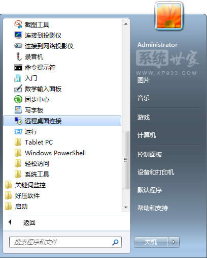 改完的遠程桌面連接端口號碼后,以后就可以通過遠程桌面連接的時候使用9999作為連接端口了,別有用戶的人就無法使用默認的3389連接到你的電腦,那么你的電腦的安全性就會得到大大增強! 用遠程桌面進行傳輸文件: 第一步 首先在win7系統桌面中依次單擊windows7系統下載桌面的“開始”/“程序”/“遠程桌面連接”命令,打開遠程桌面連接程序界面;