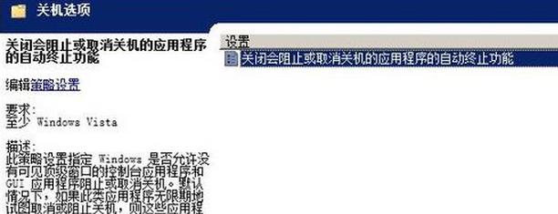 雙擊右側窗口中的“關閉會阻止或取消關機的應用程序的自動終止功能”,如圖: