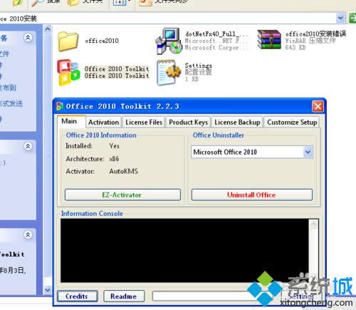 5、運行破解激活軟件 Office 2010 Toolkit 點擊EZ-Activator。等待完成破解;