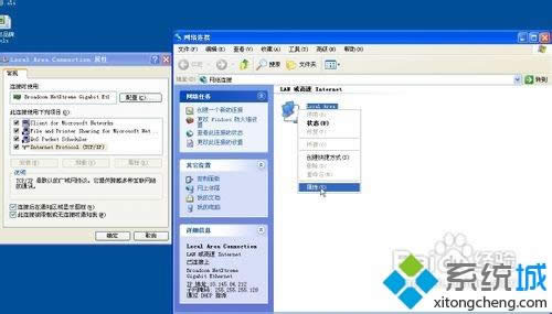 2、進入網絡鏈接!這里可以看到計算機上面的所有鏈接; 在本地鏈接圖標上右鍵屬性打開本地鏈接屬性!